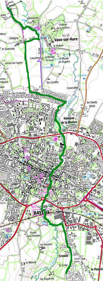 carte des boucles de l'OT autour de Bayeux